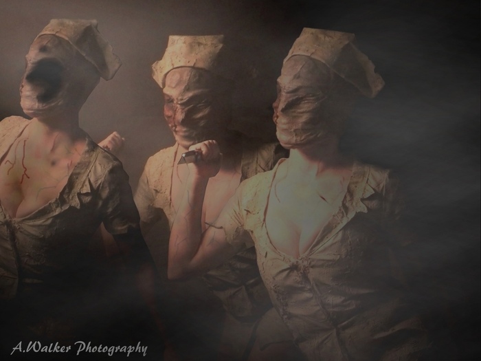 Чрез мгновение мы прибыли в подвал. Нырнули вглубь, в катакомбы, а там… там нас радушно принял в себя Сайлент Хилл. Да, мы шли, и я всю дорогу думала, что по ночам здесь стопудово оживают. И монструозные медсёстры, и местная, с несовместимою с жизнью травмой вусмерть обиженная на убийц своих, Душа. Она, нынче Хозяйка, сущая княгиня Тьмы, воспаряет из раскалённого адского недра, дабы отомстить обидчикам и оторваться в садистическом жертвенном ритуале.