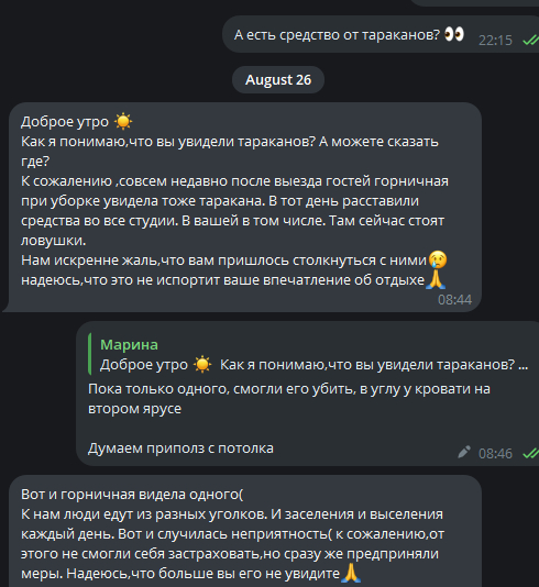 В Августе решили попробовать сервис суточно ру (который критикуют за удаление негативных отзывов). Проживание омрачило наличие в квартире тараканов.