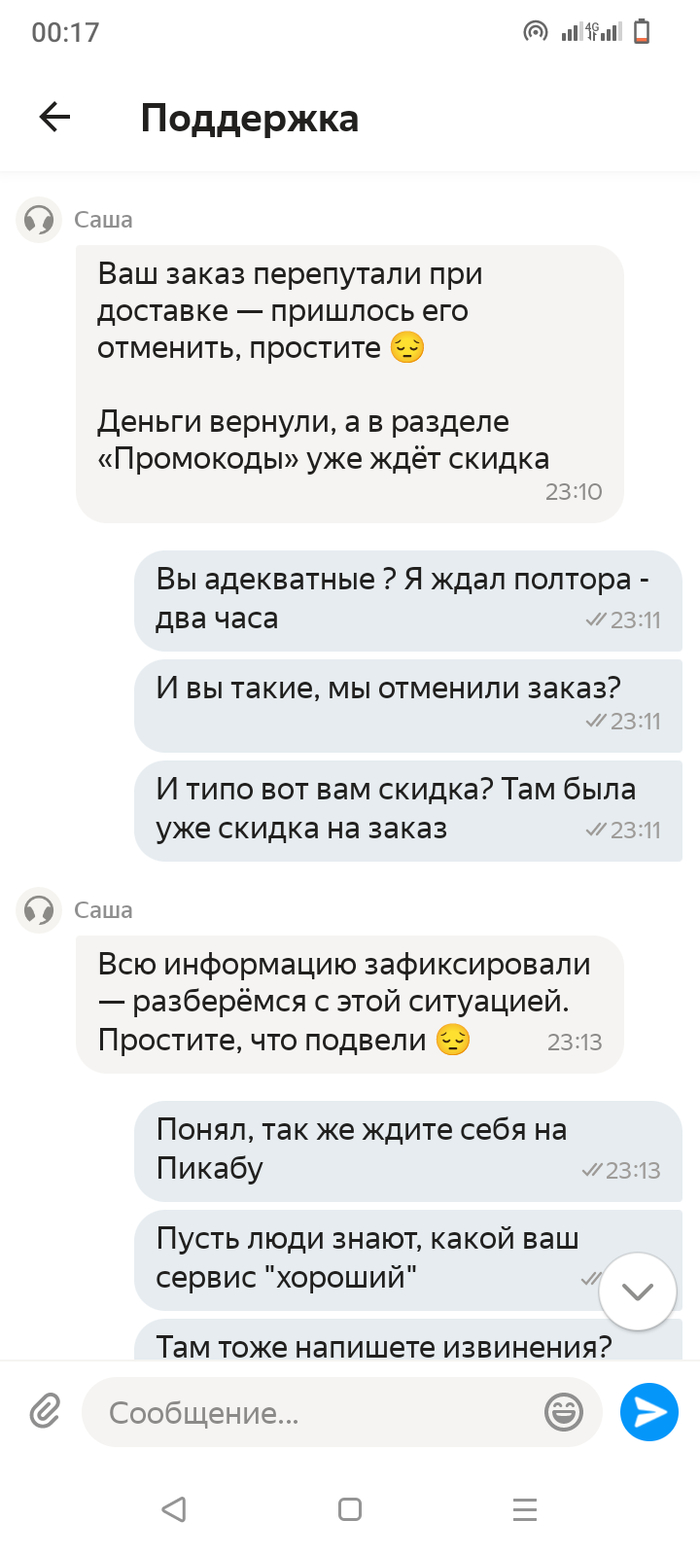 Да, про силу Пикабу я вспомнил, но на самом деле с ними бодаться толку будет мало, просто, обидно.. Жрать то я хочу до сих пор, придется самому готовить