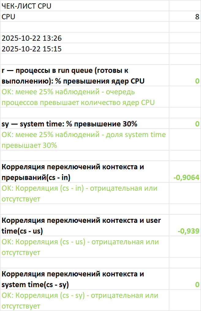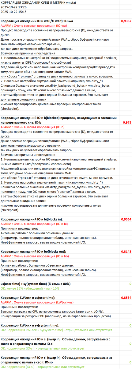 1. КОРРЕЛЯЦИЯ ОЖИДАНИЙ СУБД И МЕТРИК vmstat