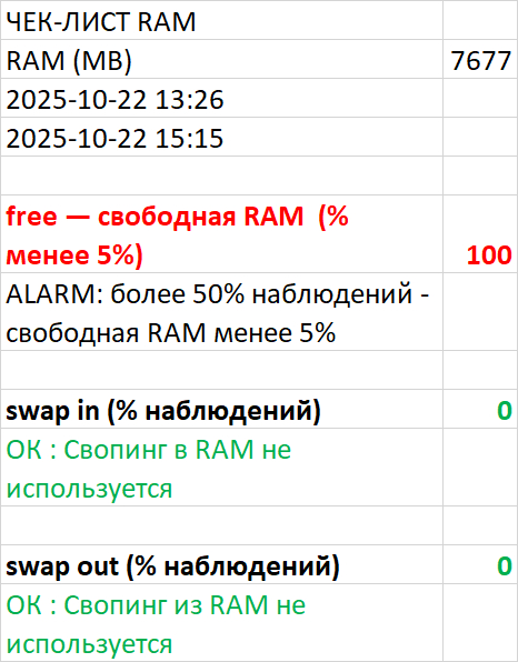Память использована полностью. Есть риск нехватки RAM при повышении нагрузки .