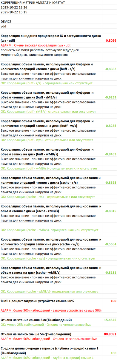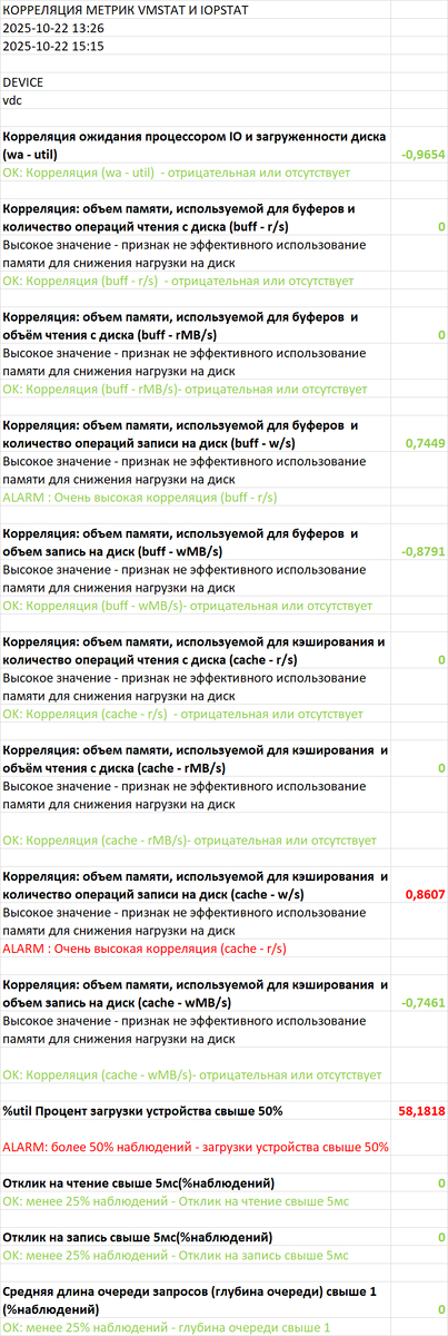 2.1 КОРРЕЛЯЦИЯ МЕТРИК VMSTAT И IOPSTAT для файловой системы /data