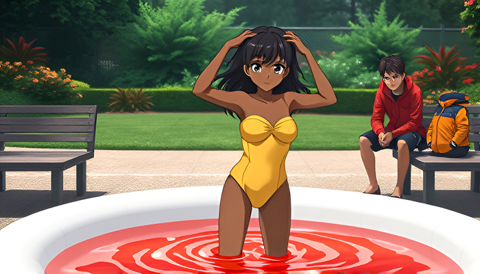 Flickick 6 месяцев назад Купальщица в магме Купание Купальник Арт Девушки Аниме Надувной бассейн Сад Ещё 0