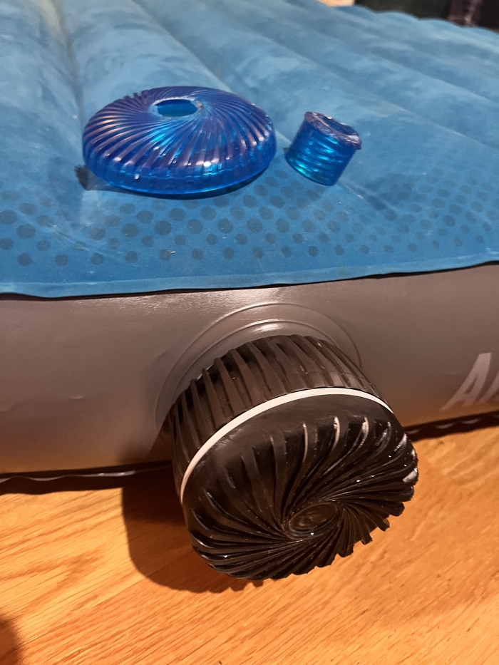 И вроде неплохой матрас. Качается очешуеть, как быстро вручную (жаль правда эта фича блокирует использование электронасоса) и для сна вполне удобен. Из минусов по сути только вот этот самый злополучный хитрый клапан, что на фото выше. И торчит он нефигово так: если матрас впритык по размерам палатки, очень неудобно качать будет. И как оказалось не шибко-то он надёжен. Крышка клапана прожила около 2 сезонов и развалилась:
