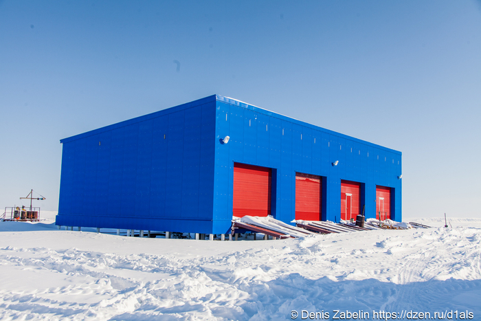 Собственные очистные сооружения, тёплые туалеты (да-да, это уже достижение в нашей Арктике), резервуары с водой, дизельные генераторы, склады и гаражи.