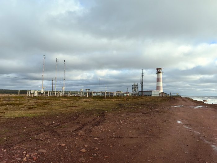 Не какой-нибудь старинный и романтичный, а суровый функциональный объект 1978 года постройки, принадлежащий Минобороны, кажется, или метеорологам. Он стоит как страж, молчаливый и непререкаемый. Подойти к нему, ощутить эту мощь — это уже путешествие. Первый маяк был построен здесь в 1938 году в виде навигационного знака, но из-за ветхости поставили этот. С тех пор и служит он безопасности судов, идущих из Белого моря в Кандалакшский залив.
