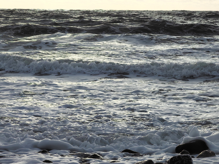 Берег был накрыт густой белой пеной. Небо свинцовое с редкими проблесками, картинка максимально живописная. Тревожная даже. Присела на камень, уставилась далеко в море и таааак меня там пробрало. Но не от пронизывающего ледяного ветра, от ощущения мира, природы, её могущества и власти над нами.