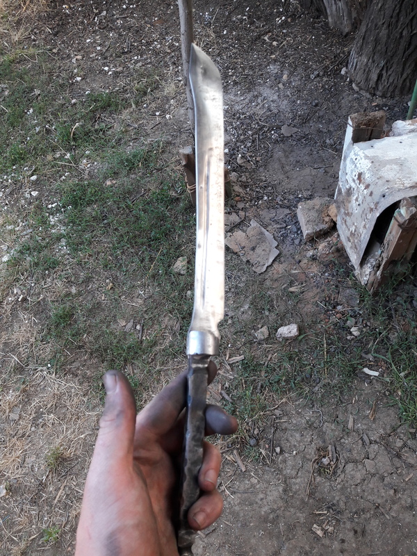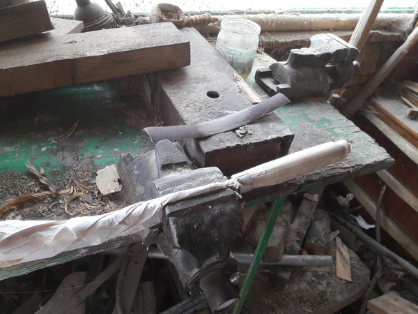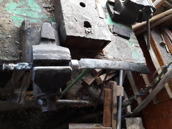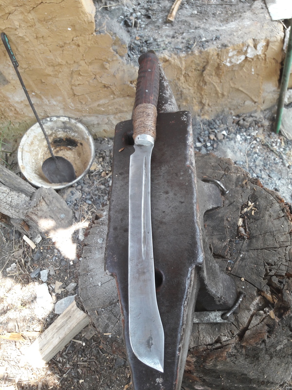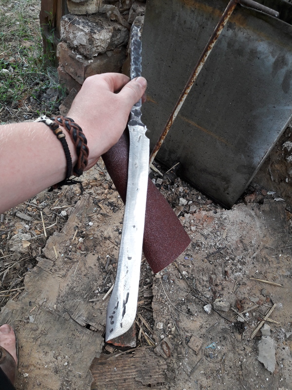 Далее все просто нагреваем метал, берем молот по тяжелее и бьем. Долго бьем, пока не получим подходящую форму. Если сплющили в лепешку и не получили нужную форму берем напильник или болгарку, или наждак, или гриндер и вытачиваем нужную форму.