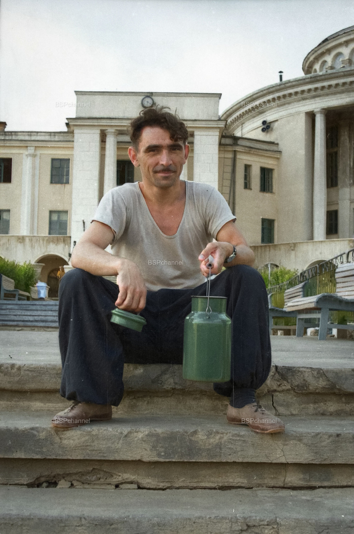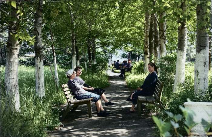 В обеденный перерыв на территории парка Калининского комбината "Искож", 1962 год.