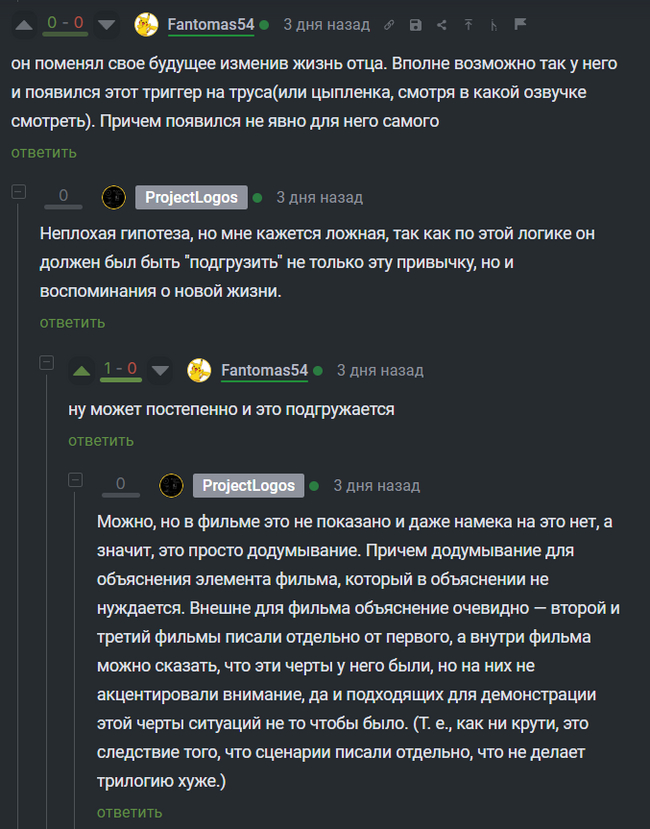 Но что насчёт изменений во внутренней логике фильмов? Для демонстрации вновь обратимся к комментариям.