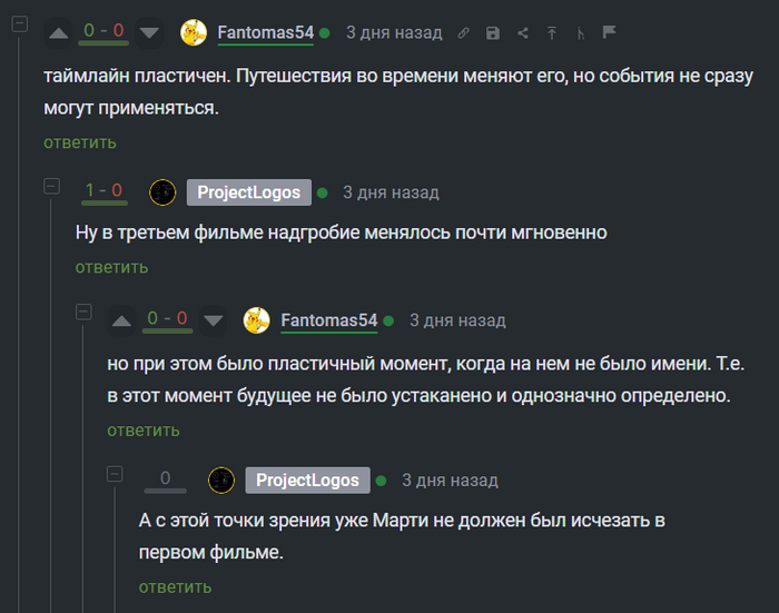 И с этой точки зрения уже Марти не должен был исчезать в первом фильме. (Весь наш небольшой диалог представлен на комментариях ниже)