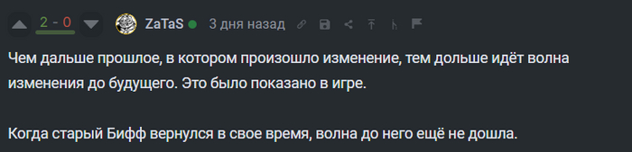 Итак, волны снимают действительно серьёзный ляп с возвращением старого Биффа в родное время, однако это не меняет основную проблему: разная скорость этой волны.