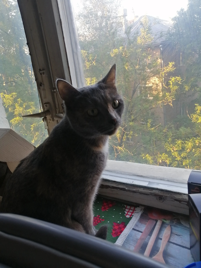 На днях на улице Чапаева 9 появилась кошка. По всем признакам она домашняя, хоть и была без ошейника. Отзывалась на кс-кс,и без опасений подходила гладиться. Кошка очень ласковая и немного меланхоличная. Любит валяться, смотреть в окно, но особенно любит когда ей гладят пузико. Случайно коснулись - уже мурчит как трактор.