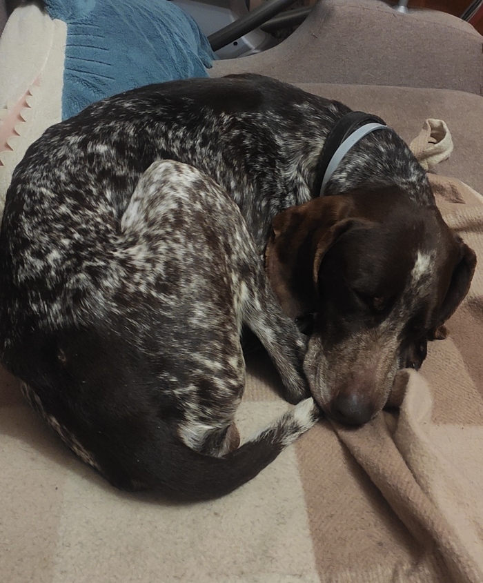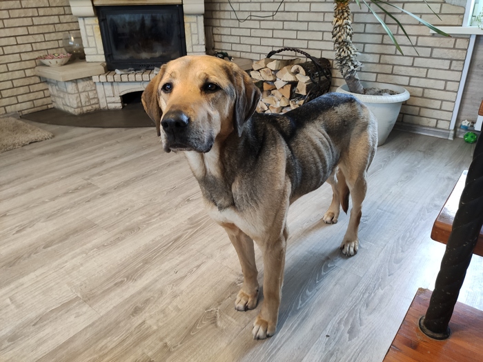 Собаку взять/передержать негде, поэтому осталась там же. Возможно чья-то потеряшка или убежала во время охоты.