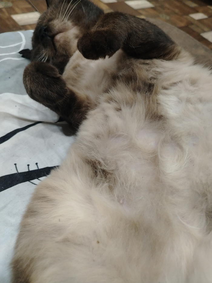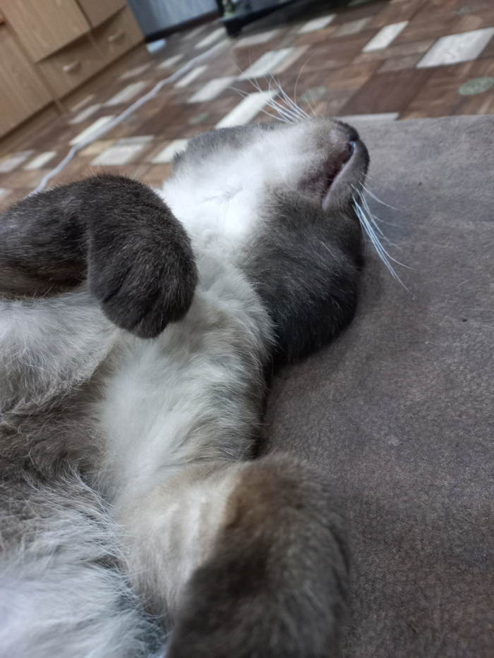 Живём в небольшом городке, в частном секторе. Поэтому может не появляться дома неделю (рекорд три месяца), а потом неделю отсыпаться. Мать у него была сиамская, а отец дворовый дворянин. Был найден и выкуплен "за спасибо" у какой то бабульки. Возраст 12 лет.