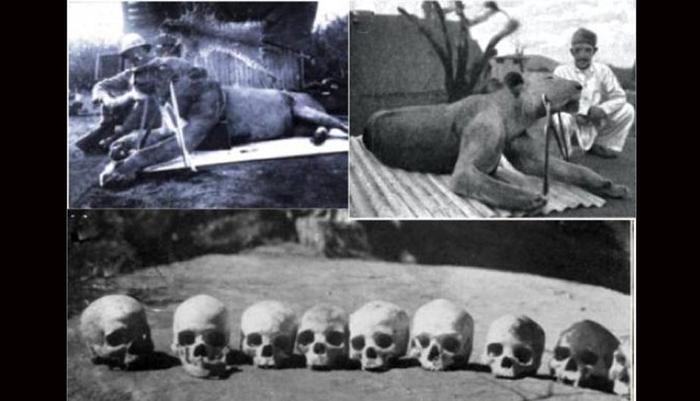 Пара местных львов, смелость и дерзость которых часто доходила до того, что они в прямом смысле вытаскивали рабочих из их палаток и съедали их заживо на краю лагеря.
