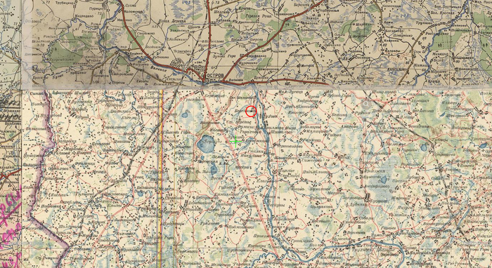 А вот дальше был затык, области с тех пор поменялись, Островской районе это нынче Псковская область и очень далеко от Ленинграда.