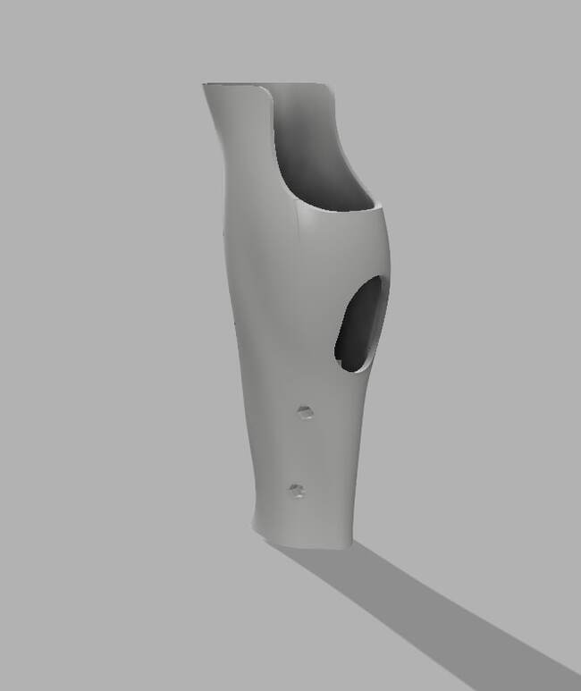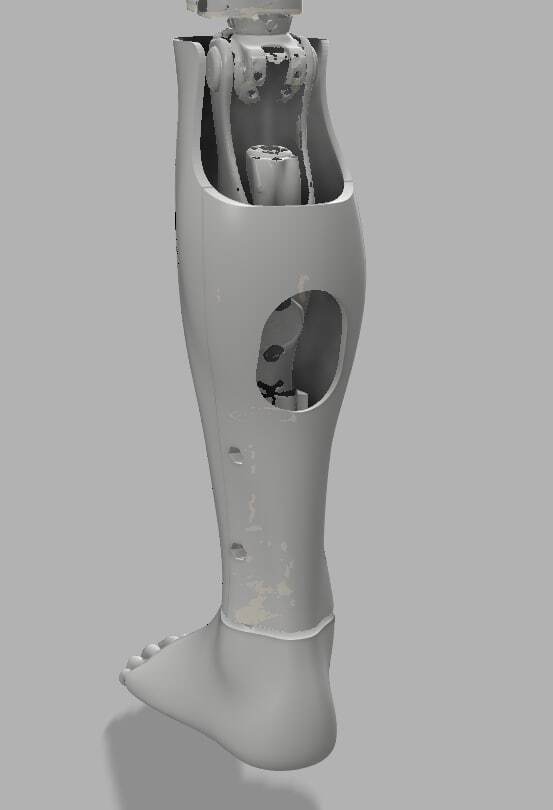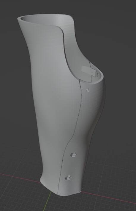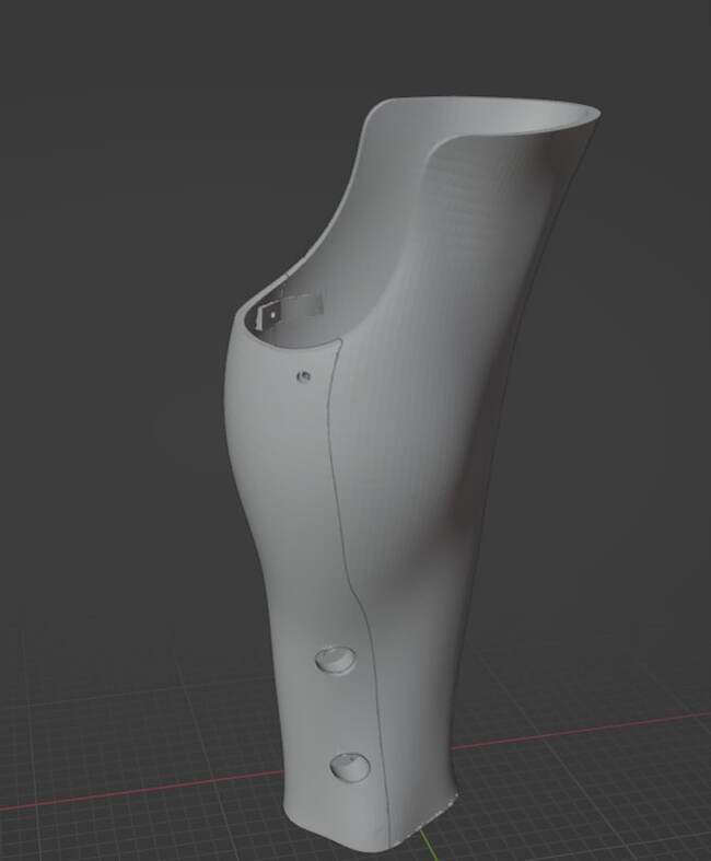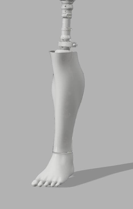 2. 3D моделирование. Работали в BLENDER. По дизайну сперва хотели сделать что-то футуристичное, киберпанковое, но ушли в натурализм. Скачали свободную 3D модель ноги из инета и приступили к системе крепления.