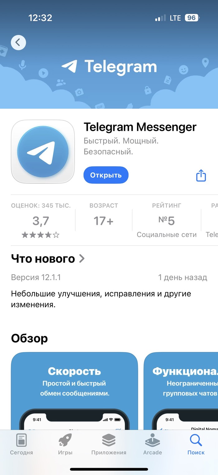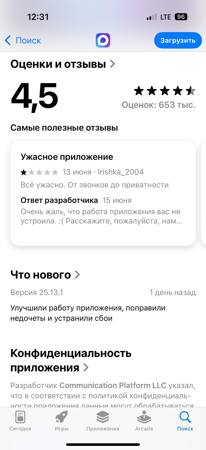 Решил глянуть, есть ли новомодный и очень рекламируемый мессенджер в AppStore. Есть. Однако удивило количество оценок, сама оценка и место среди других приложений. За несколько месяцев существования приложения более 650 тысяч оценок? У телеграма за 12 лет(!) существования для iOS и то оценок почти в два раза меньше. Попахивает накруткой.
