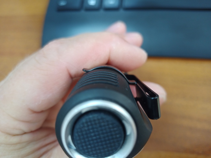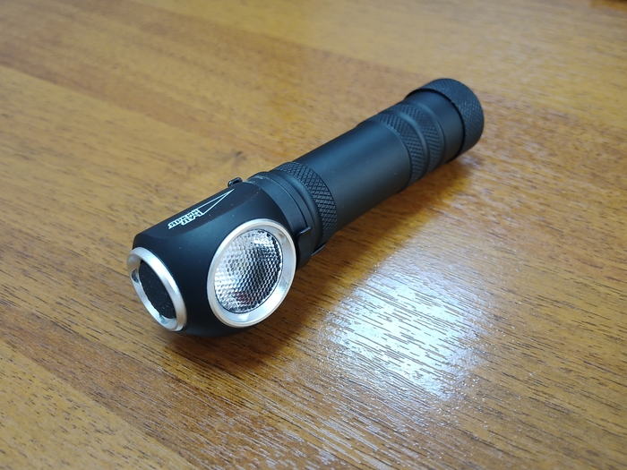 Популярная и недорогая модель налобного осветительного приборчика в металлическом корпусе, имеющего удобную Г-образную форму. Световой поток до 600Лм. Можно использовать не только как налобник, но и установить вертикально, а также закрепить на металлической поверхности (например, капоте автомобиля) магнитом в торце крышки батарейного отсека. Источником питания является съемный аккумулятор типа 18650, который можно приобрести в комплекте. Время работы на одном заряде батареи до 180 минут. Доступно пять режимов работы фонарика. В кнопку включения встроен цветной индикаторный светодиод зарядки (красный — зарядка; синий — полный заряд). Корпус имеет хорошую влагозащиту и выполнен из алюминиевого сплава. Есть прищепка для крепления на карман.