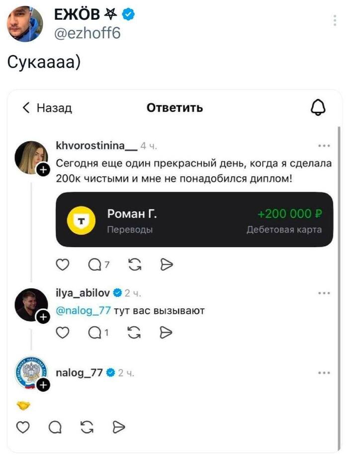 Скачал это приложение, но оно ни каким макаром не хочет работать, испробовал советы из интернета по типу "включи другой интернет, почисти кэш, переустанови, переустанови из этого магазина, нет с сайта налоговой, помой голову, почисти картошку..." И всё это не помогло. Даже обращение к тех поддержке дважды нихуя не дало, один раз мне ответили вообще не читая моё обращение, второй раз ответили уже прочитав, примерно так "в стране сейчас всё очень хуёво, идёт война с логикой и поэтому не работает интернет" при том что у меня с вэб версии на пк и этом же телефоне всё работает, а приложение больше недели не пашет.