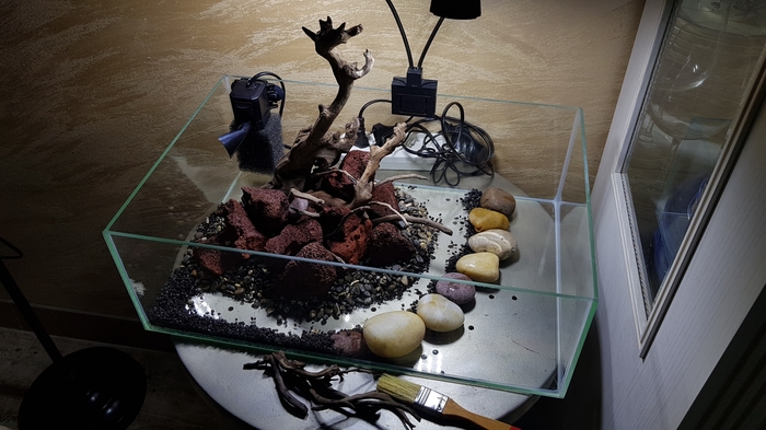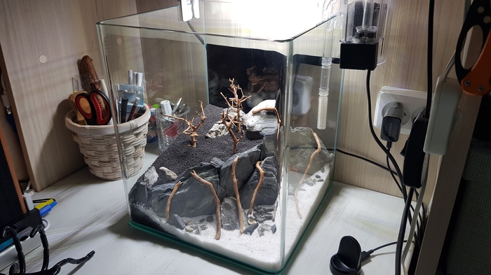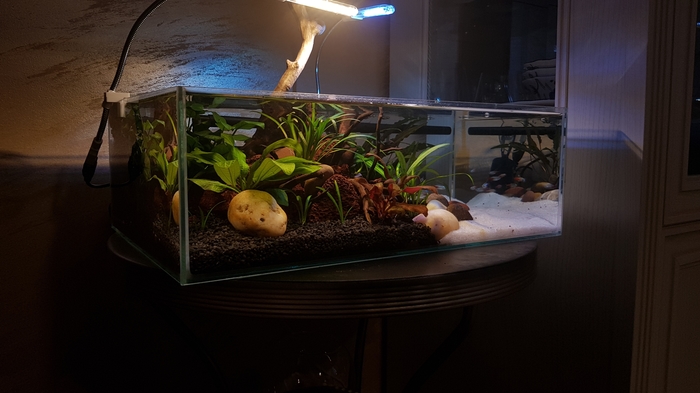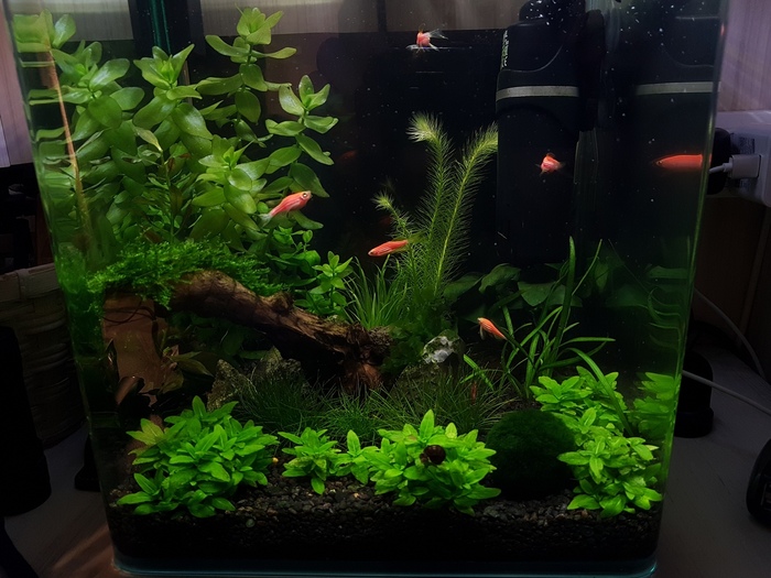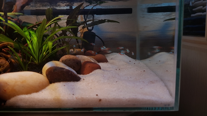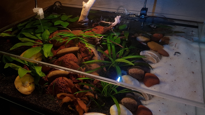 Ну и самое важное, - столкнулся со следующей проблемой, китайская флейта-фильтр со своей задачей не справляется. Приходится делать подмену два раза в день по полтора литра, это примерно 10% объема, заодно убираю остатки несъеденного мотыля. Как улучшит ситуацию? Лучше ли станет если поставить китайский "рюкзачек", или копать вообще в другу сторону?