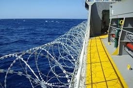 Также по всей длине судна или если борт достаточно высокий, в самой уязвимой части натягивается колючая проволока
