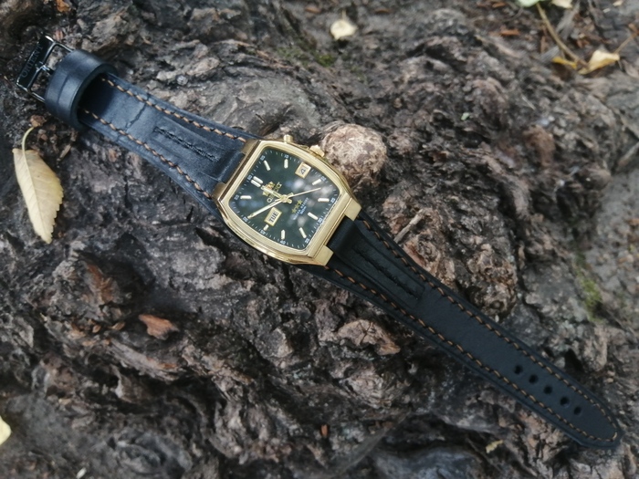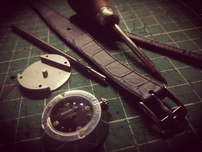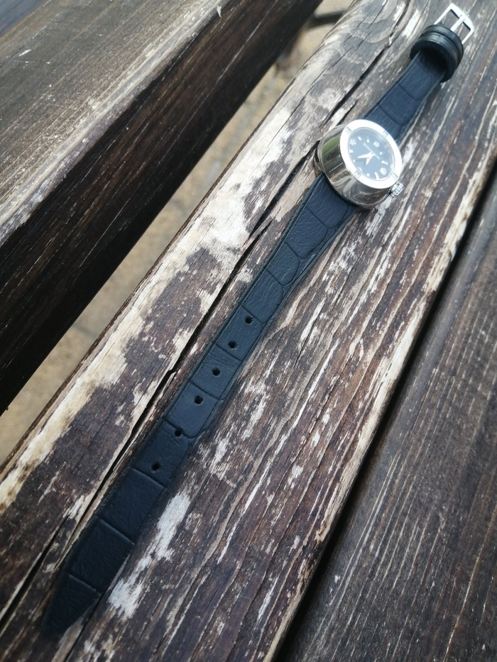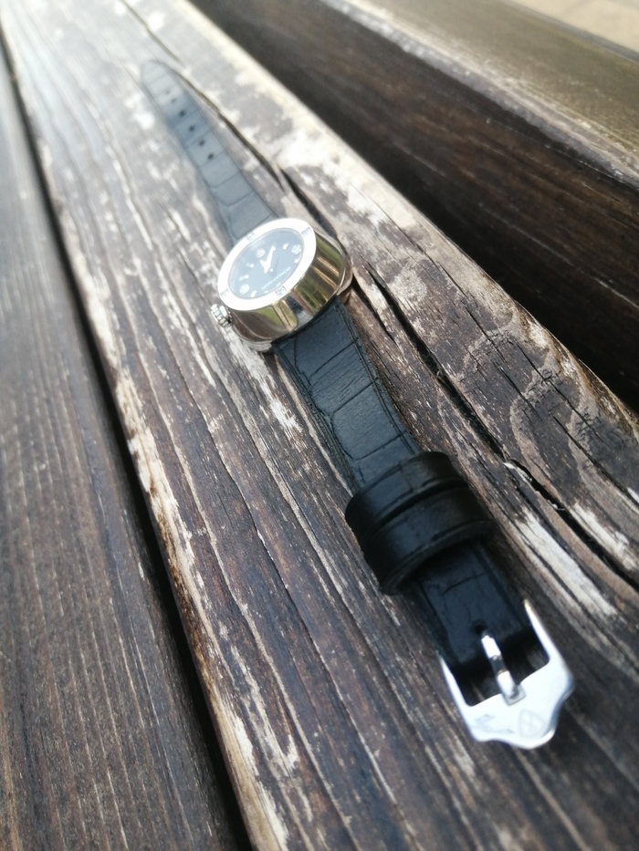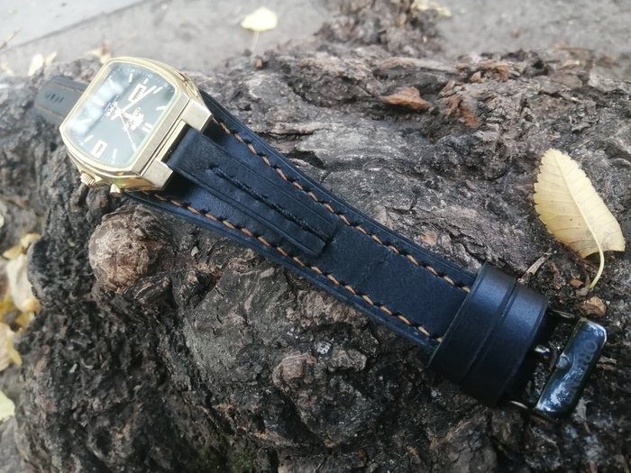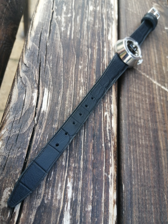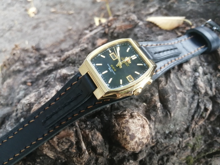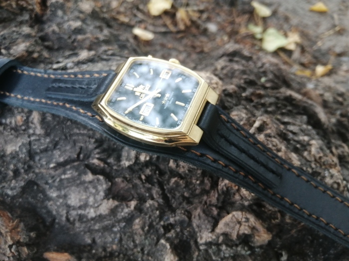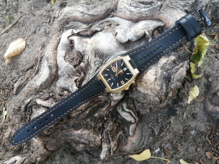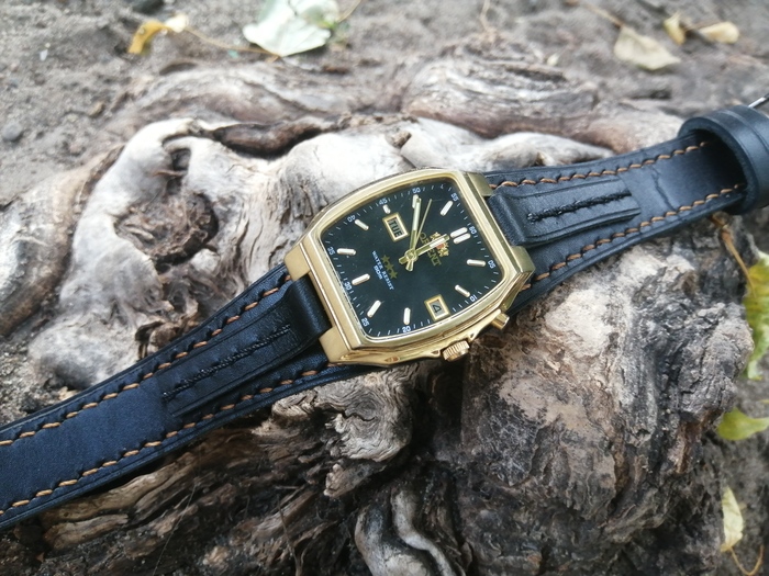 Вот такие часы с интересного вида циферблатом-конверт, попали на ремешок.
