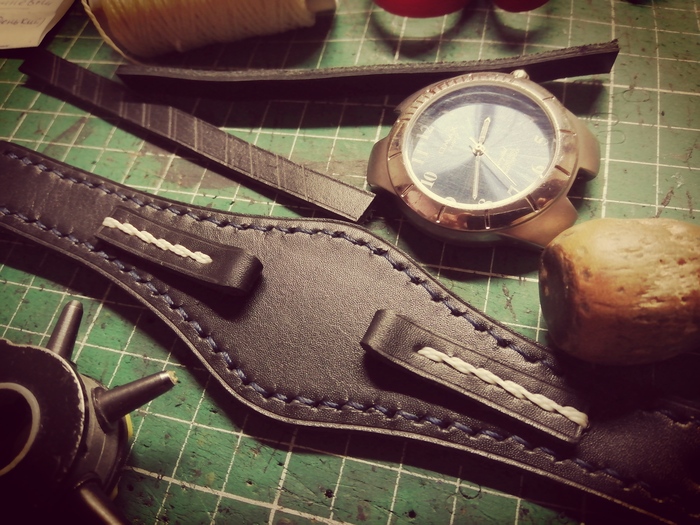 Владелец часов понравился ремешок, сочетание цвета кожи и нити прошивки как на ремешке для Ракета 24 часа. (Ремешок для часов Ракета 24 часа. Ремешок напульсник для часов )