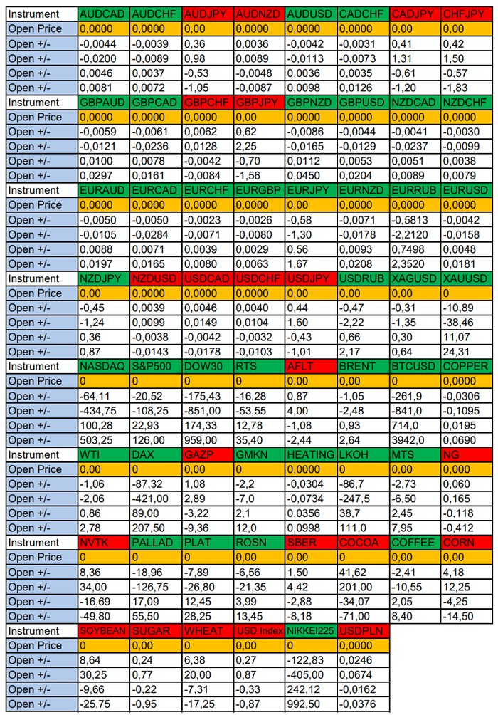Весь перечень анализируемых активов указан ниже в общем количестве 62 инструмента. Здесь Вы найдете активы рынка Форекс, популярные активы Московской биржи, не менее популярные активы Чикагской биржи СМЕ и мажор криптовалютного сегмента - Биткоин, за которым следуют все альткоины.