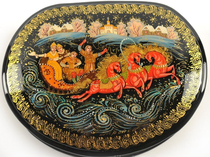 Палехская роспись не имеет аналогов во всем мире. Она выполняется на папье-маше и только потом переносится на поверхность шкатулок всевозможных форм и размеров.