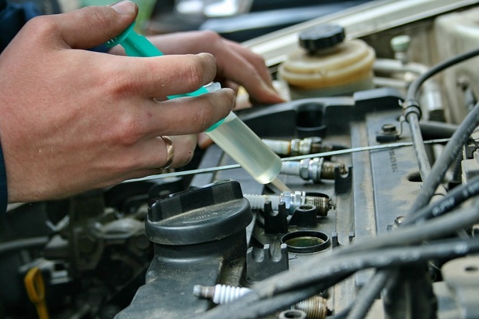 Второй способ тоже связан с керосином: эту жидкость нужно разбавить в равных пропорциях с бензином и залить прямо в цилиндры мотора через свечные колодцы. Затем машину нужно оставить в покое на несколько часов, периодически проворачивая коленвал. Потом надо будет заменить в агрегате масло – и готово.