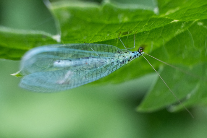 Златоглазки питаются нектаром, пыльцой и медвяной росой во взрослом возрасте, а личинки охотятся на вредителей и их яйца. Получается, что не так уж далеко она от муравьеда и ушла? :)