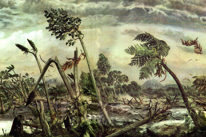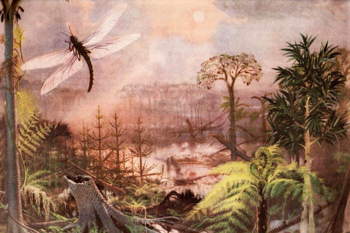 Каменноугольный период относится к палеозойской эре. Тогда ещё не было современных растений, а суша была покрыта гигантскими хвощами, плаунами и папоротниками. Именно их ломали древние бури, и тот уголь, который сейчас добывается человеком, является останками тех растений, запасённых для нас Матушкой-Природой примерно за триста миллионов лет до того, как была построена первая печь.