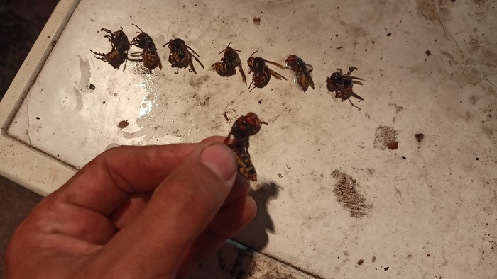 Да, тут стоит заметить, что 1-5-7 пчел это были цветочки, на самом деле их там стало летать уже штук 30. Вползают они в свои дома (эй, в мой дом!) через недавно запененные монтажной пеной дырочки под крышей, а улетают почему-то исключительно через открытую дверь. На которую я как раз повесила сетку от мух и прочих прелестей сельской фауны (не только же ксилокопы тут живут, ну). Через сетку пчелы вылезти не умеют, поэтому они начали ее своими мощными челюстями прогрызать… О мама миа, я уже готова переступить через свое искреннее желание не убивать фиолетовых ксилокоп, прости, Красная книга. Все равно остальные методы выселения предлагают заманивать пчел в смертельные ловушки с сахаром.