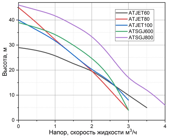 Нам подходит фиолетовый график т.е. этот насос выдаст давление, как в городской сети если одновременно мыть посуду(на полную и с плясками) и петь в душе.