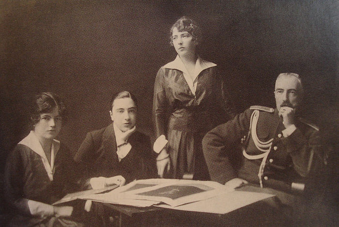 (фото: обычные гости семьи, ведь у всех же такие гости? слева-направо - Николай Романов "Ники", он же - император Николай II, Михаил Романов "Миш-Миш", далее Георгий и Сергей Михайловичи Романовы)