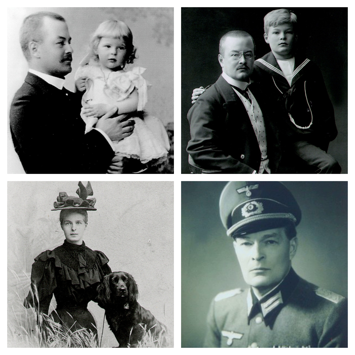 (фото: верхний ряд, слева - Георг-Николай с дочерью Ольгой, справа - он же с сыном Георг-Михаилом; нижний ряд, слева - жена Георг-Николая, княгиня Ольга Юрьевская, справа - сын Георг-Михаил в форме офицера Вермахта)