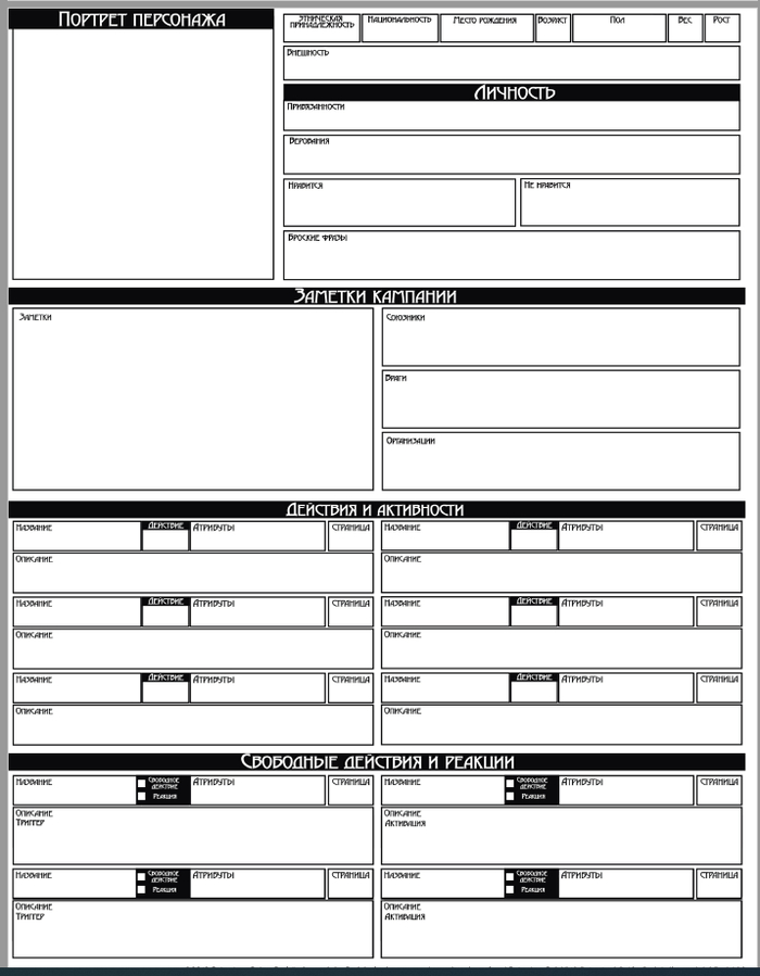 Правда все эти листы всё равно придётся переписывать на обычный Лист Персонажа