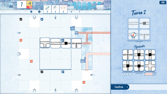 Правила просты: у вас всего семь ходов, чтобы успеть выстроить транспортную сеть мечты. Нужно соединять выезды на поле, прокладывать шоссе, возводить мосты, ставить станции — и при этом следить, чтобы ни один маршрут не остался незаконченным, иначе штрафных очков не избежать. Каждый ход приносит неожиданности: кубики подбрасывают случайные комбинации, а дополнительные испытания на время не дают расслабиться.