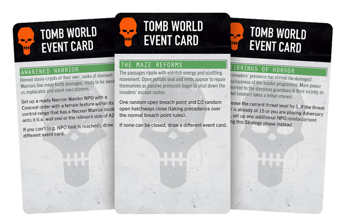 Только что пробудившийся воин может без предупреждения отсоединиться от стены, разместившись в зоне действия соответствующей скульптуры. Комплексы гробниц — это странные, постоянно меняющиеся места, которые постоянно восстанавливаются и перестраиваются, поэтому вытягивание карты «Реформы лабиринта» закрывает одну точку прорыва и до трёх люков. «Побуждения ужаса» поддерживают напряжение, повышая уровень угрозы, определяющий поведение комплекса гробниц в режиме «Совместные операции», и добавляя новые угрозы в режиме «Противоборства».