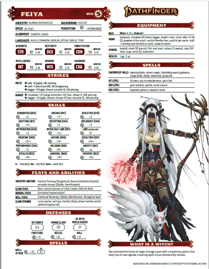 Ах, да, этот Лист Персонажа несовершенен. Здесь отсутствует лист под Формулы, благодаря которым можно создавать предметы, отсутствуют листы под Верных Зверей и Фамильяров. Именно поэтому Paizo в своё время выпустили Character Sheet Pack с изменёнными и дополненными листами персонажей.