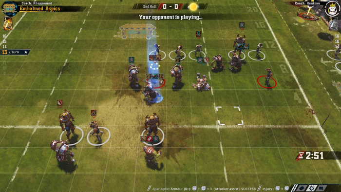 Отдельно стоит отметить проработанную анимацию: надменные эльфы с шлемами под мышкой, едва держащиеся на ногах порождения Хаоса, эффектные монетки при жеребьевке и праздничные танцы после тачдаунов — все это создает особое настроение. Атмосферу дополняют два комментатора, которые подбрасывают ехидные и меткие реплики. В итоге, устоять перед обаянием Blood Bowl 2 действительно сложно.