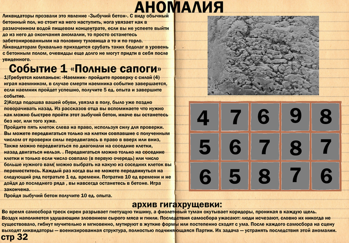 o Игрок сталкивается с событиями, монстрами и аномалиями, которые описаны в книге локаций.