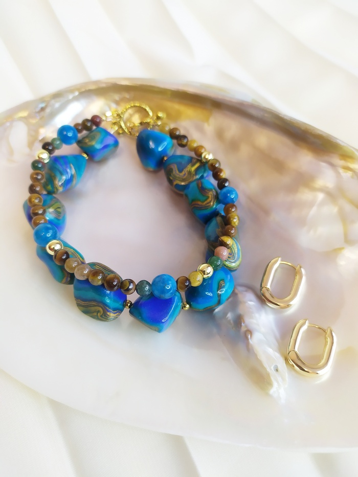 ◽Полимерная глина, натуральные гранаты, пресноводный жемчуг, застежка из стали;