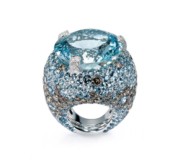 Украшения с аквамарином обладают притягательной красотой благодаря кристальной чистоте, прозрачности и необыкновенному морскому оттенку. Самым лучшим считается минерал нежно — голубого оттенка, а самым дорогим темно-голубой. Зеленый аквамарин ценится меньше. Если в камне присутствуют различные вкрапления или трещины, его стоимость снижается до 70%.