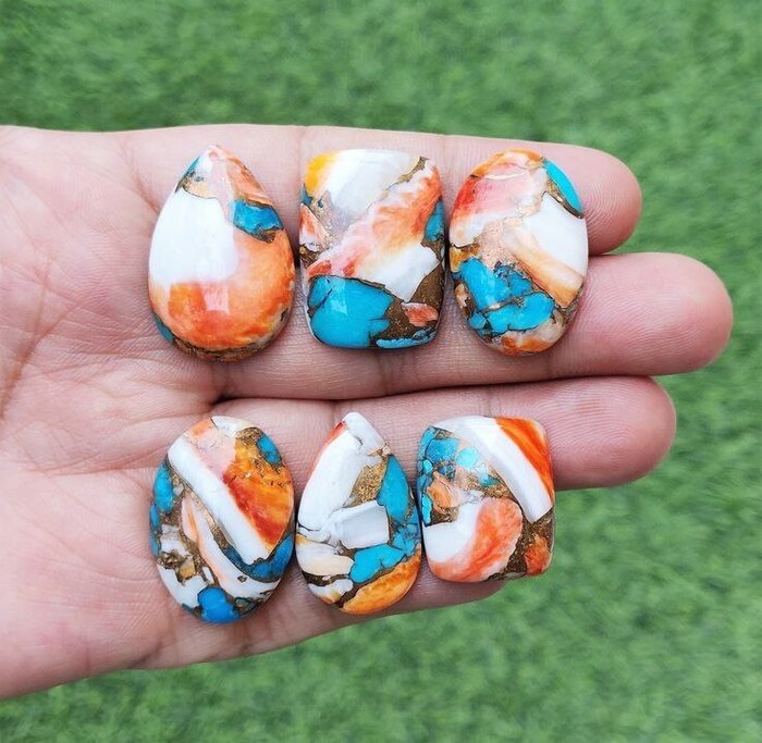 Дайверы погружаются на глубину до 300 футов, где среди скалистых рифов находят редкие колючие устрицы. Особенно ценятся фиолетовые разновидности, обитающие в самых глубоких водах. Затем раковины шлифуют и нарезают на кусочки, после чего мастера создают уникальные узоры, сочетая эти кусочки с натуральной бирюзой. Именно поэтому каждый камень уникален.