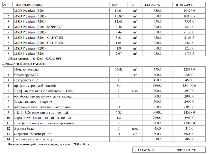 Делаем ремонт в квартире (65 квм, вторичка, с нуля), настал момент посчитать натяжные потолки.