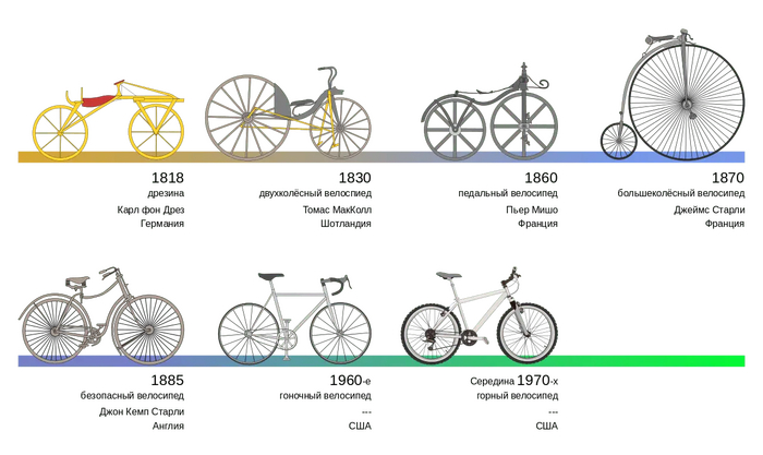 Велосипед начали изобретать более 200 лет назад. Но современный форм-фактор появился в 1885 г. Его и будем считать годом появления велика.