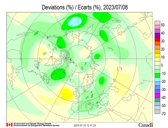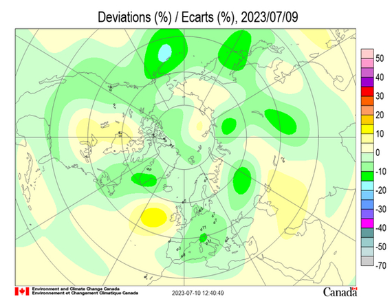 На рисунке 1 показана озоновая обстановка на 9 июля.